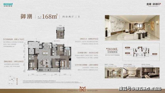 细节奢装:玄关墙预埋艺术展陈系统、次卫嵌入智能雾化玻璃、全屋配备龙湖智慧家居面板。