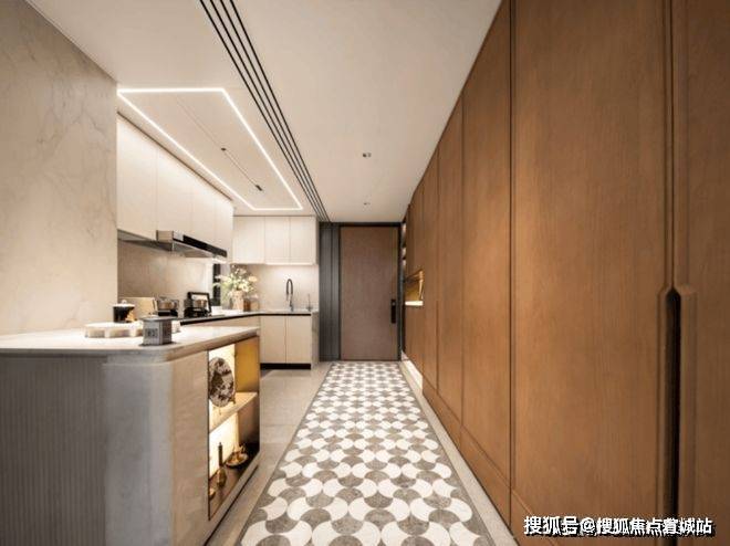 这是一个非常巧妙的设计,比如将冰箱塞入这个凹槽,从而释放厨房的冰箱空间,延伸灶台的面积,或者可以做岛台...