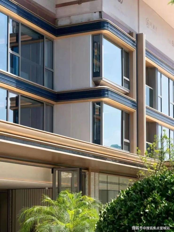 大面积玻璃幕墙搭配香槟色金属线条,辅以造型格栅与石材基座,将现代感与高级感融为一体,质感媲美高端豪宅,视觉上简洁大气又不失精致格调,一眼便能俘获人心。