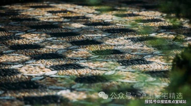 与全国在售中式作品相比,上海桃花源中轴五进制中轴园林,完整性、丰富度堪称全国之最。金瑞园坐北面南,由正南入园,中轴园林不仅设对景峰石、蜿蜒水街、太湖山石、亭台轩廊等景观节点,还以宽广山石庭园和辽阔水景,呈献潆回环抱之势,意趣无穷。另外,山林连绵、亭廊曲折,江南的温婉、隽永,尽藏其中。