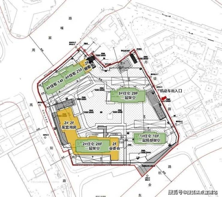 3号楼为29F高层住宅,4号楼分别为14F高层住宅、一层人才房;