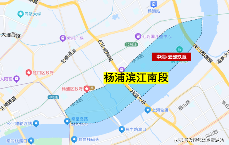 中海·云邸玖章距离江岸直线距离仅约500m,作为当下片区内离江最近的项目,享美团、B站、超极合生汇等地标综合体配套,杨浦滨江生活中心。