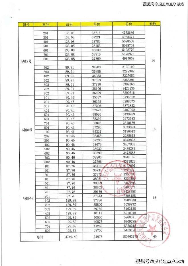 一房一价表: