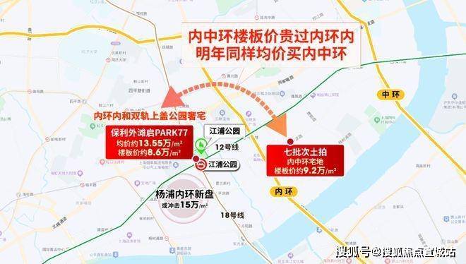 杨浦内环12/18号线江浦公园站双轨上盖,保利外滩启PARK77已过会,均价约13.55万/㎡,157套建面约99-137㎡3-4房即将认购!