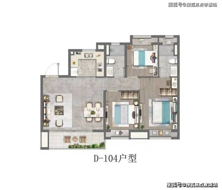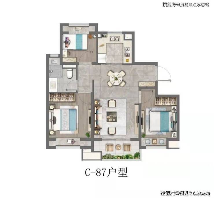 两间卧室分别位居于客厅两侧,私密性更佳;