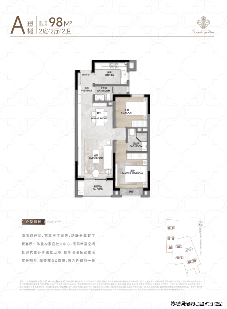 以 98㎡两房为例, 客餐厅一体化 + 阔景阳台,主卧套房设计,动静分区明确,收纳空间充足,告别 “蜗居感”。当然,如果觉得 2 房不够用,还可以做一个去客厅化设计,做成灵动空间,既能改造成三房做成卧室,给客人居住,平时还可以当成客厅,灵活使用,满足您不同阶段的生活需求。