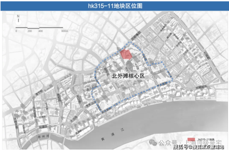 该地块地处虹口区北外滩核心地带,具体范围为东至现有丹徒路,南至hk315-07地块及规划中的东余杭路,西至hk315-14地块,北至hk315-15地块与景泰大楼;其总建设用地面积约19441㎡,计容建筑面积约51130㎡。如果扣掉“高竞品质环节”的人才公寓和公建配套设施,实际可售面积只有约47507㎡!