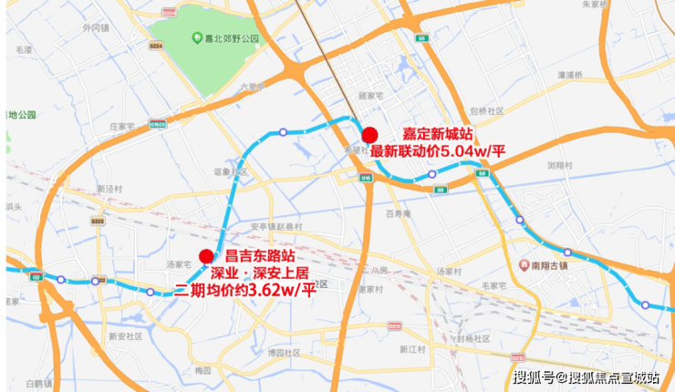 随着去年房地联动价的调整,涨价趋势明显。往前两站的嘉定新城站,在去年土拍中,嘉定新城G09-2地块的联动价攀上5.04万/m²。也就是说,未来想在嘉定买百平米新房,上车门槛直接提升了一个档次。