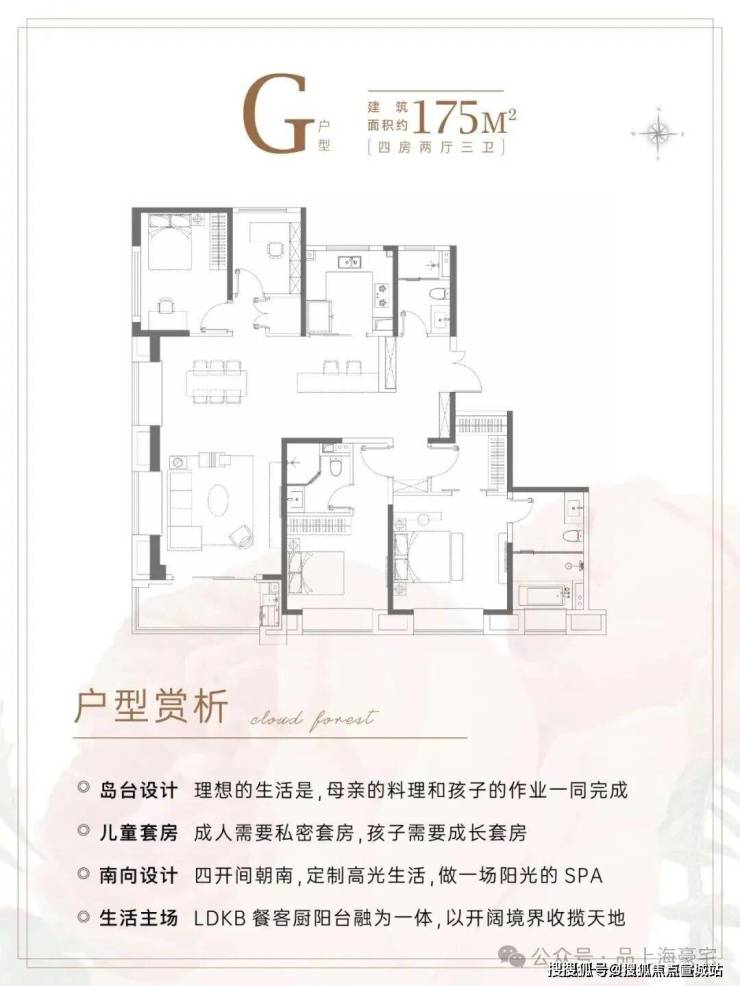 建面约175㎡4房3卫,几乎是上海改善的终点户型。四开间朝南,采光、视野以及通风都极为优秀。主卧超豪华套房,带步入式衣帽间、带可配备浴缸的超豪华卫浴,舒适度惊人。
