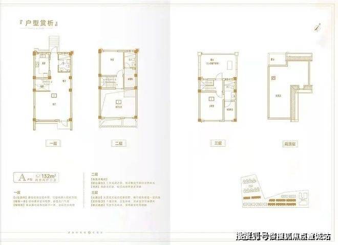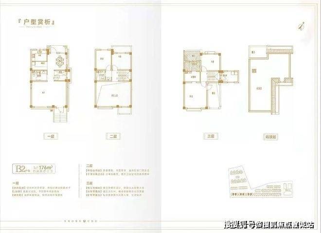 联排别墅:面积为 90-176㎡,分为中间户(90-120㎡)和边户(150-176㎡),总高三层。