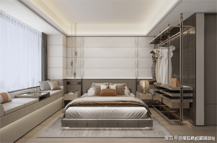 ③超豪华主卧随着人们对生活水平的提高,空间也不断升级,实现双衣帽间!建面约165㎡上叠,户型设计也是可圈可点: