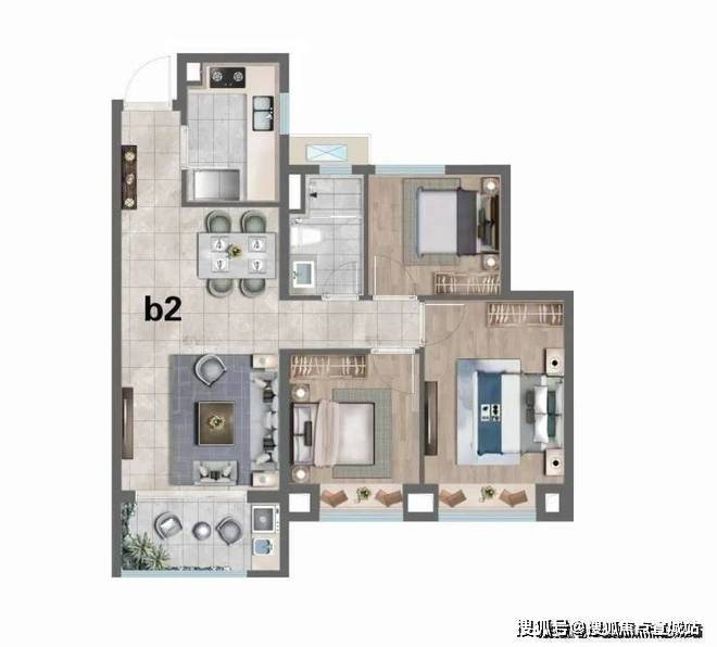 其中,建面约104㎡三房两厅两卫,三开间朝南+全卧室带飘窗+动静分离+南北通透+主卧套房设计,功能性和空间感完美结合,采光面非常足。