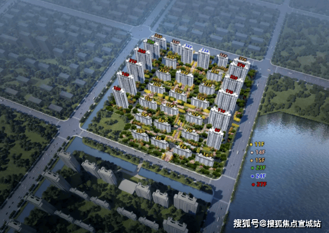 规划:34 栋楼(11 层洋房、14-15 层小高层、18-27 层高层)