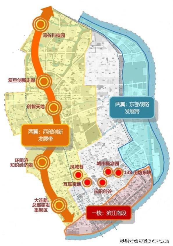 在杨浦区“十四五”规划中,杨浦区将形成“一核引领、两翼齐飞、多点发力”的发展格局