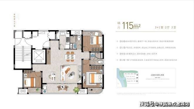2、(方正)户型方正,高得房率,超12米三开间朝南,动静分区,流畅居家动线;