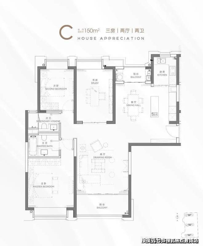主力户型:2房133㎡、2+1房135㎡、3房150-154㎡