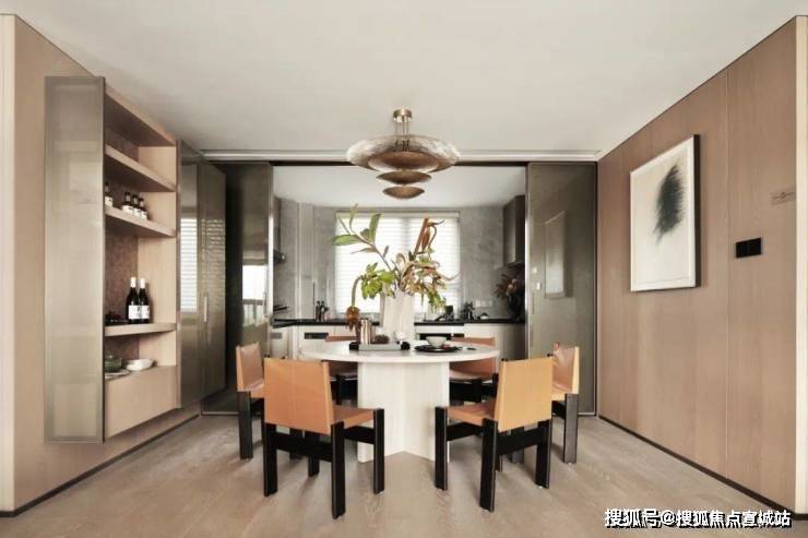 公共区域装修以现代宋式隐奢的设计重新定义东方人居生活,地上地下双大堂设计,电梯独梯入户,大规格岩板搭配木饰面背景墙,极具文化与装饰性的公区装修彰显业主的尊贵感。