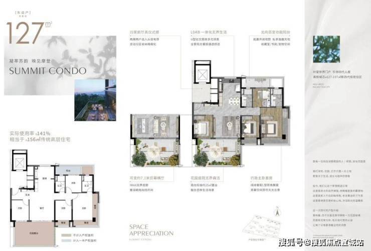 建面约127㎡小高层(实际使用面积相当于156㎡传统高层)