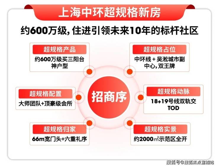 招商序项目位于中环与吴淞城市副中心,600万级新房,拥有中环地段与双轨交通,具备超规格发展优势。