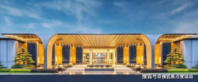 棠悦芳华轩大门实景:萃取东方礼制精髓,沿东西向主轴设置多重归家院落,形成主入口至迎宾水院及度假水池为一体的礼序归家轴。层层递进的空间,在步移景异中,营造出多重归家仪式。