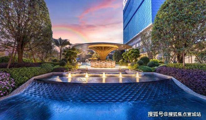 中央水景实图:景观灵感源自著名珠宝品牌CHAUMET,以“繁花造型珠宝”为设计理念,将大胆、华丽、创新于景观之中,形成特有的珠宝风格景观设计系统。