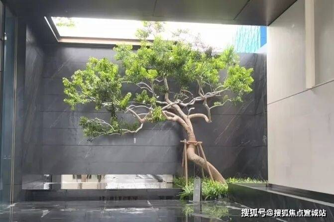 为打造入口门庭的归家仪典感,百绿采购团队悉心甄选七株铁冬青:两株主景冠形饱满、长势健硕;五株辅木源自山野,风骨遒劲。它们以对称布局对映成景,勾勒出“五福临门”的吉祥格局,增添四季常青的生机。以山林意象为主题的营造景观,使业主从踏入大门开始即可感受到奢雅的生活氛围。