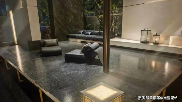 悬崖会客厅廊架地面采用安哥拉黑3.6m×1.8m×0.3m大板铺贴,施工难度极大,需8人协作抬运并配合机械作业,最终呈现出大板面的优质效果。会客厅廊架采用昂贵蜂窝不锈钢大板,大气且保证平整度,以高品质材质与精湛工艺,进一步提升空间的质感与格调。