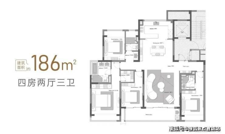 建面约186㎡四房两厅三卫