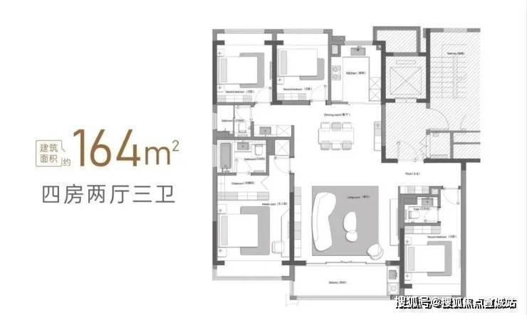 建面约164㎡四房两厅三卫