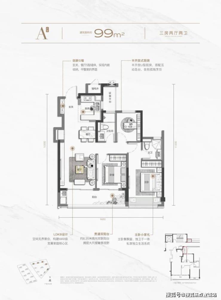 建面约129平方米四房两卫和99平方米三房两卫的户型 ,也都各有亮点。前者具有宽屏大横厅和约9.1米跑道阳台,后者也具有约6.35米的起步双联阳台,视野开阔。