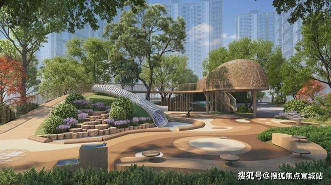 项目以“两轴、一环、双客厅、双乐园”营造艺术度假体验式社区。结合“七大景观亮点”打造移步异景,体验景观与生活交融之趣。
