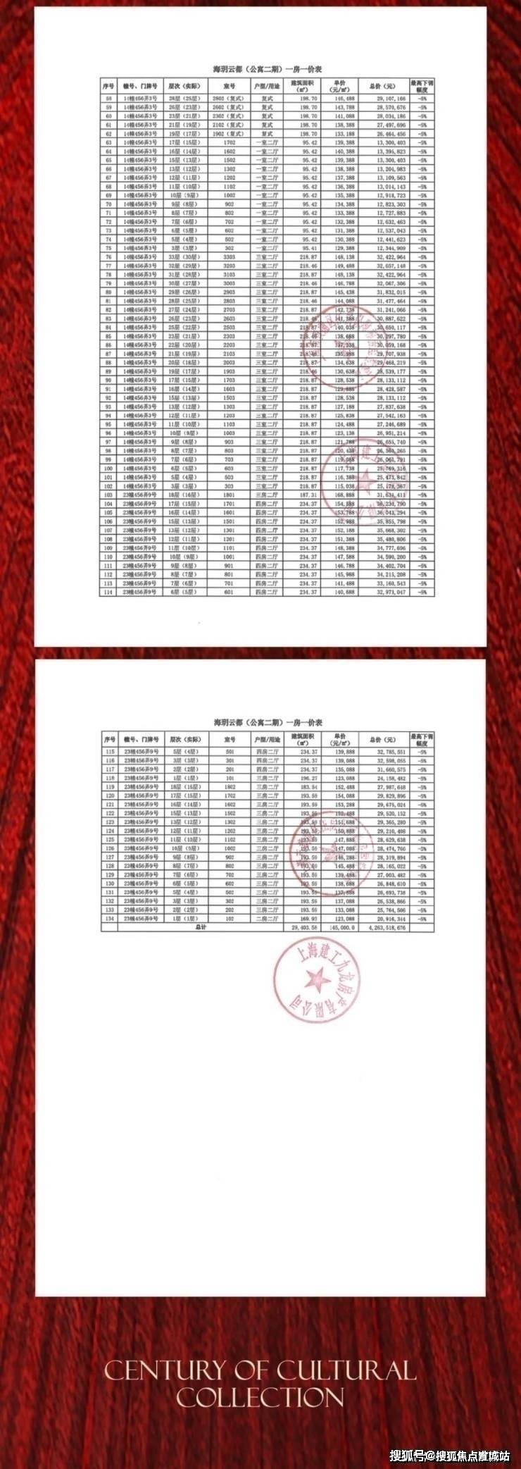 项目一房一价表▼