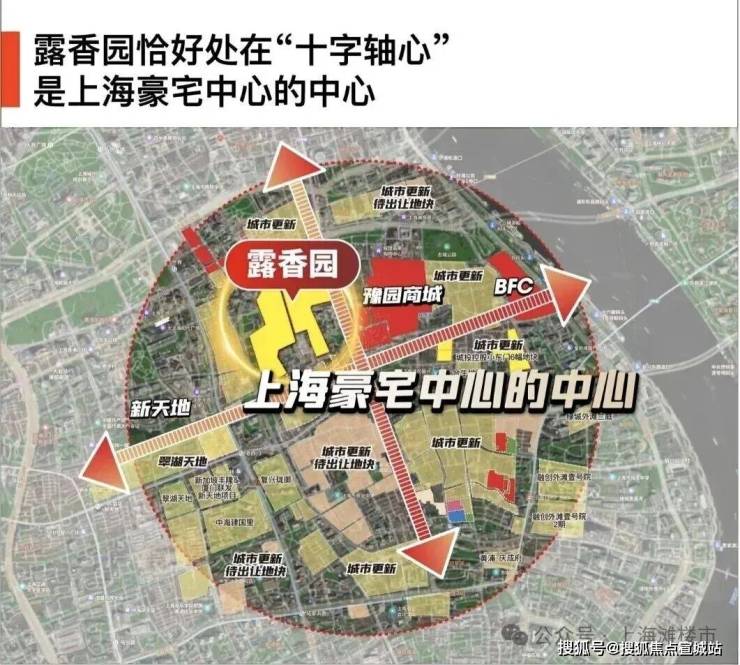 作为上海绝对市心,露香园直线距离人民广场、淮海路、新天地、外滩、豫园等上海市地标性区域均不超过1.5公里,距离陆家嘴直线约2公里。