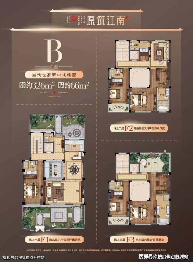 本项目更大一点的户型如326平更是如此,相比225平,更做到了大面宽设计,在户型中间处设有庭院,南向、北向都可享受采光、通风效果。