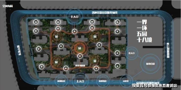 一界一环五园十八境景观法则,侧写9大生活场景。