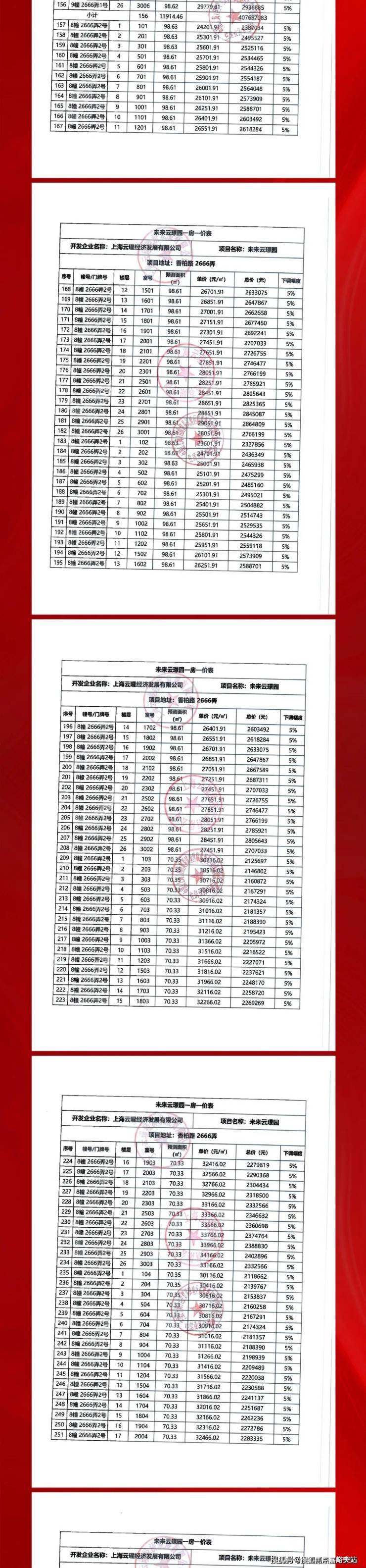 项目前期一房一价表