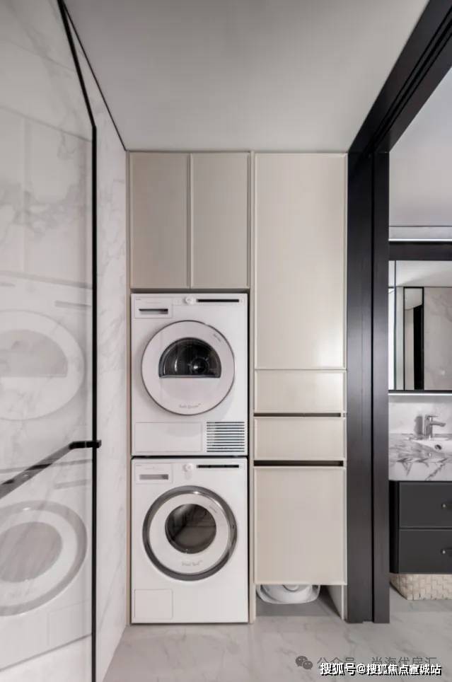 1 61户型还交付家政间,洗衣/烘干机和柜体都已配备齐全。