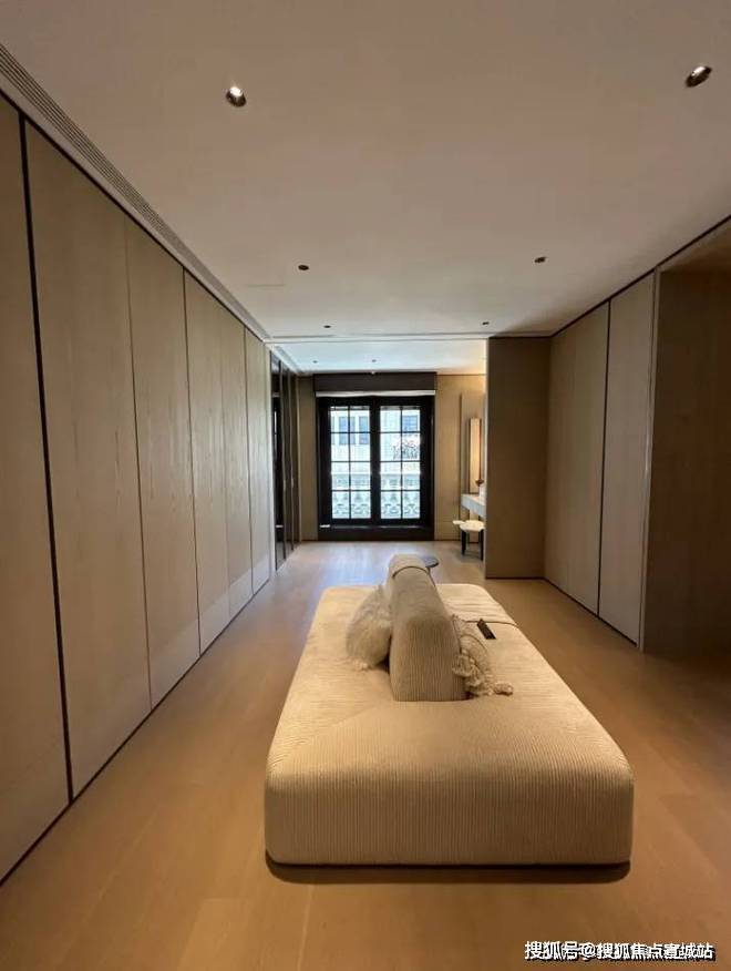 三楼整层为主卧套房,样板间设计了双开门入卧室,进入起居空间,样板间选择在这里放一些艺术装饰、设计吧台来彰显主人品味。
