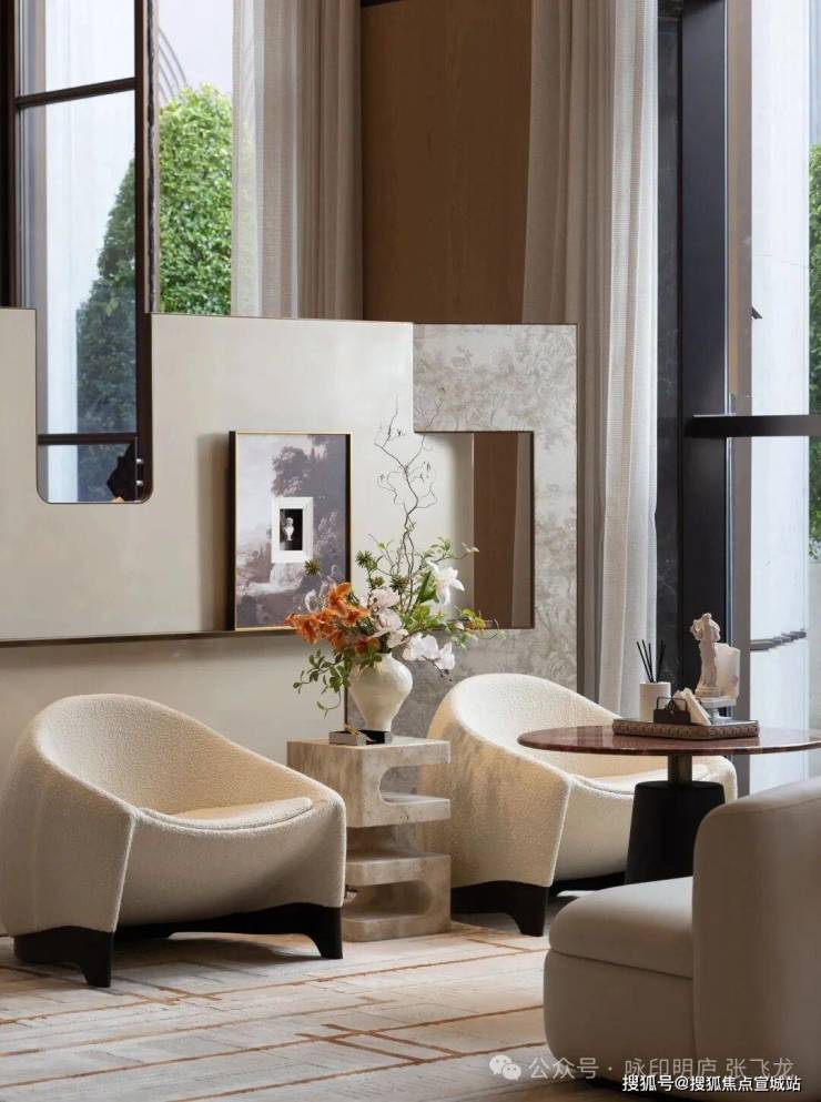 建筑特邀九米总建筑师贺珉,通过运用黄金比例分割、结构层次延展、弧线与棱角、雕塑感美学、斯卡帕序列叠级、空中花园等立体元素,打造金边玉幕、悬浮镜面、艺术框景、外方内圆等建筑标识。