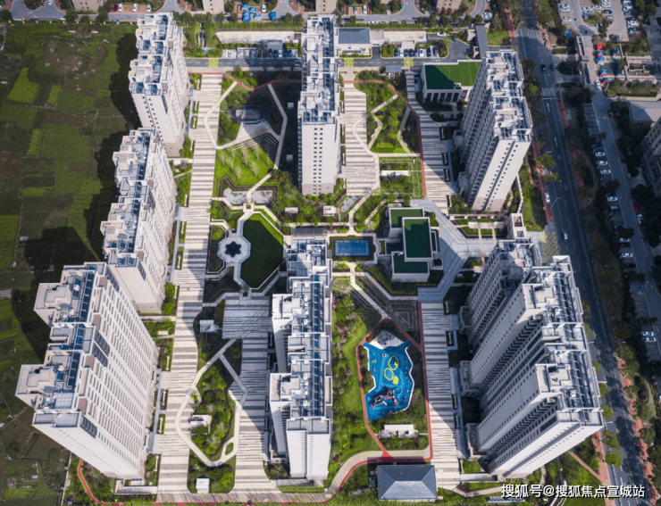 它整体偏现代风格,外立面以米棕色+深咖色为主,与近两年的住宅项目比,窗墙比低了一些。