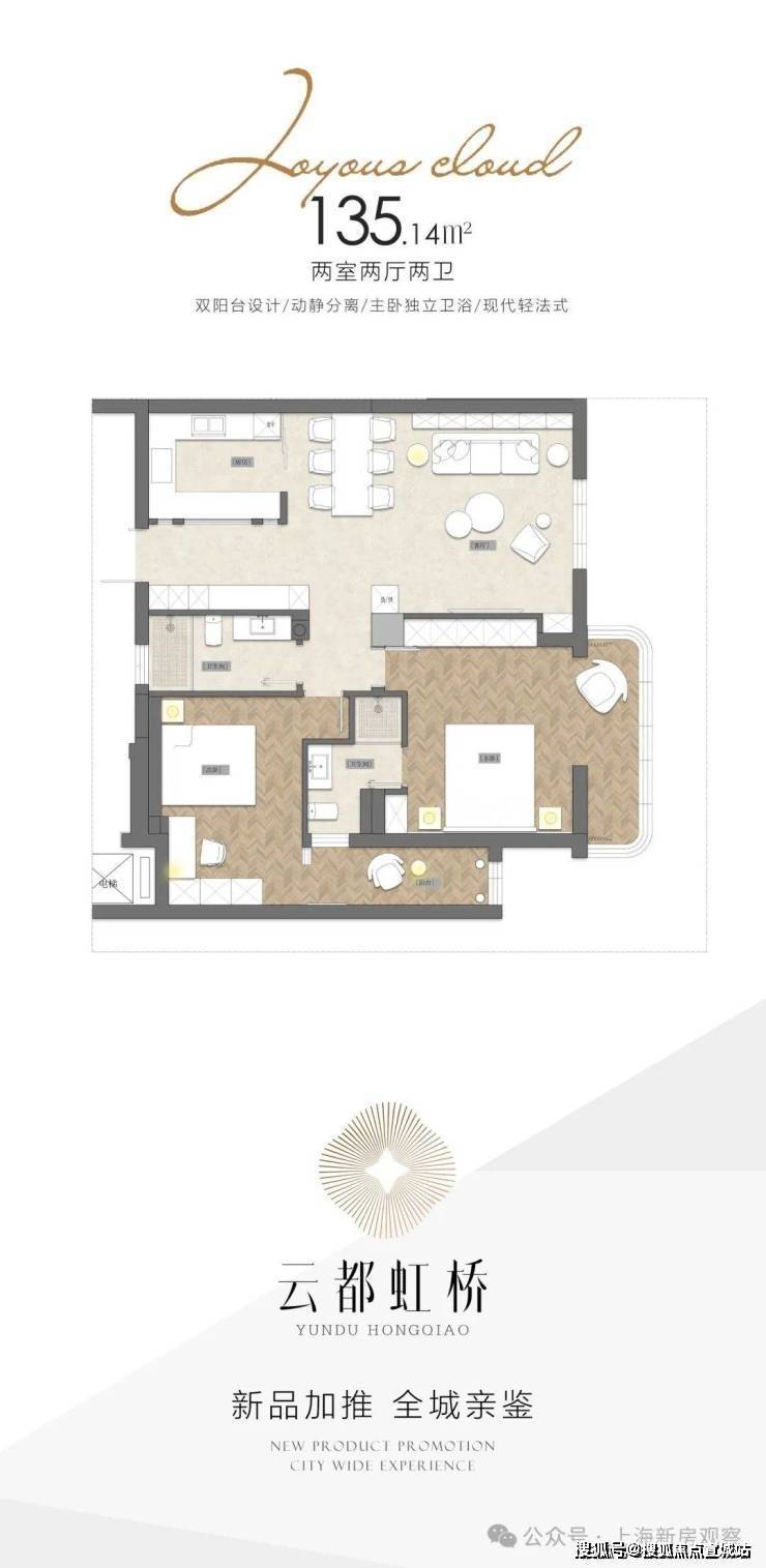 长宁古北国际社区【云都·虹桥】建面135-175㎡,户户带阳台,得房率80-110%!