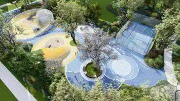 ②全维运动体系:约450米+460米南北双跑道;楼栋间分龄健身场地;篮球场+综合球场