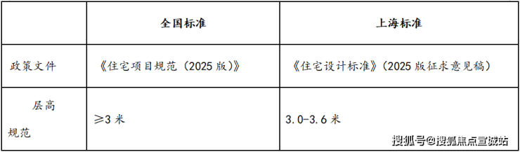 本项目洋房层高3.2米,高层3.4米,层高设计高于全国《住宅项目规范(2025版)》底线,符合上海《住宅设计标准》(2025版征求意见稿)。