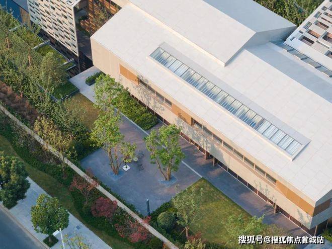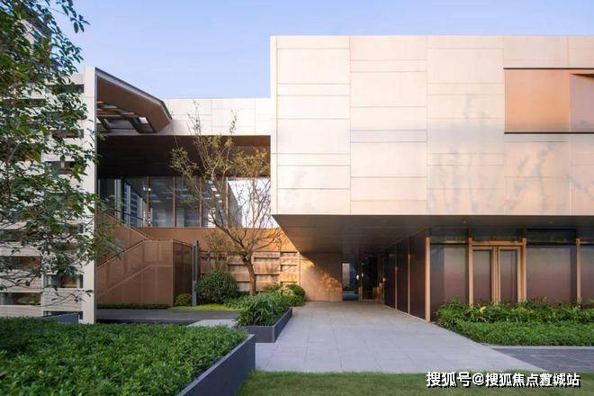 苏州仁恒溪棠售楼处电话☎:400-8828-814(售楼处预约看房热线)建筑外侧采用银灰色铝板以体现社区中心的简洁素雅的气质,内侧采用暖金色铝板让使用者感受到温暖舒适的氛围,内外相映成趣。