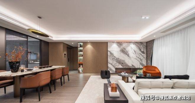 苏州仁恒溪棠售楼处电话☎:400-8828-814(售楼处预约看房热线)洽谈区家具的材质以天然木质、大理石及柔软舒服的面料为主,暖色的皮革及金属肌理也使得空间更加温馨。饰品及雕塑以园林元素为主题,当传统园林蕴含的精神属性与未来科技感形态相结合,则创生出超现实、未来感山水园林意境。至此,游走的过程仿若“一径抱幽山,居然城市间。”