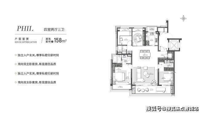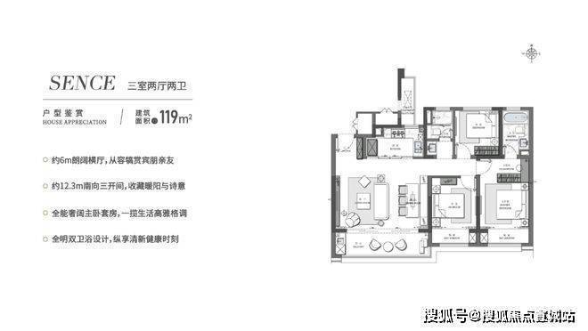 苏州仁恒溪棠售楼处电话☎:400-8828-814(售楼处预约看房热线)“大面宽”已成为衡量住宅品质的重要标准之一,因为其代表着更多的采光、更好的通风、更佳的居住体验。以仁恒溪棠建面约158㎡「明星」户型为例,其南向面宽达到约12.7米,带来3开间朝南阔境格局。