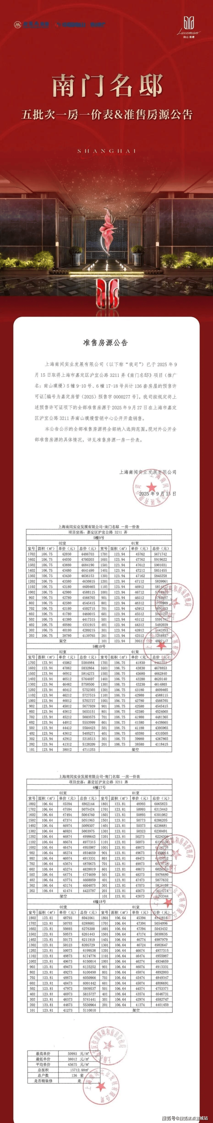 南山璞缦项目五期加推105-123㎡3房户型,共136套房源,过会均价均价45675元/㎡;另前期少量105-198㎡3-4房在售,总价365万起,可直接认购!作为嘉定新城封面豪宅产品,项目备受购房者的关注!