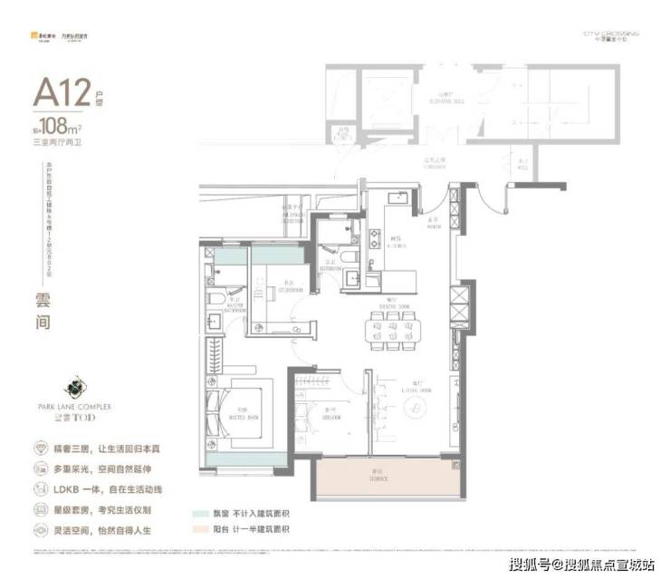 建面约108㎡的明星户型,则在有限的空间内做到了尺度感与舒适度的最大化。横跨客厅与次卧的巨型宽面阳台,采光面极为奢侈