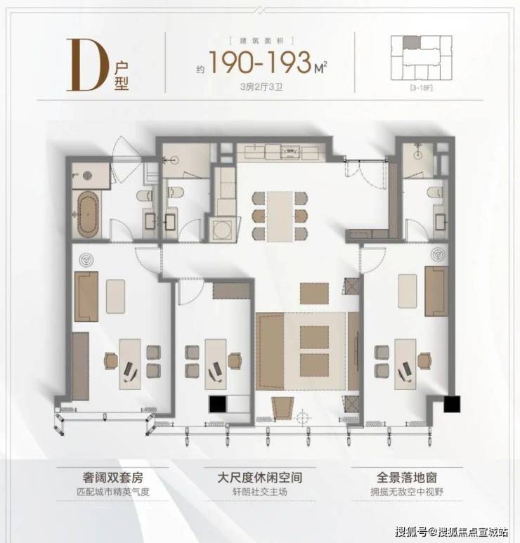 户型设计:南北通透,多带花园(首层)或露台(顶层)。