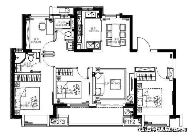 建面约95㎡的3房2厅2卫户型,这个户型的实用性太高了。能保证业主从二人世界到二胎家庭的全生命周期需求。